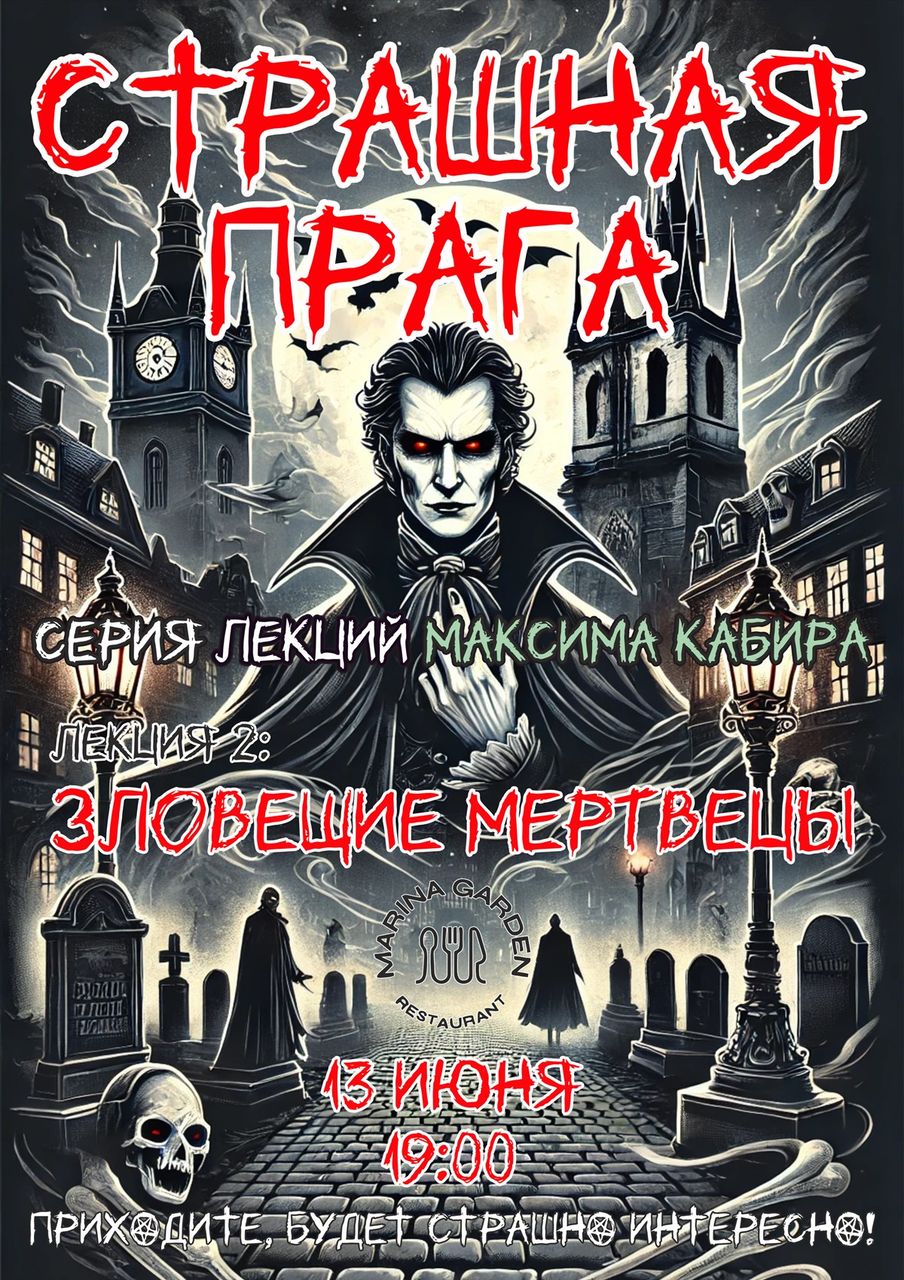 Боязнь мертвецов – один из самых древних и сильных страхов человечества. На второй лекции из цикла „Страшная Прага“ историк и писатель Максим Кабир препарирует пражские трупы во всём их разнообразии. Вы узнаете, как усопший рыцарь несколько лет держал в страхе город, как зловещий образ чешской дворянки мог повлиять на бессмертный роман Дракула, познакомитесь с самыми дикими похоронными традициями, практиковавшимися на этих землях, и столкнетесь с настоящими упырями.