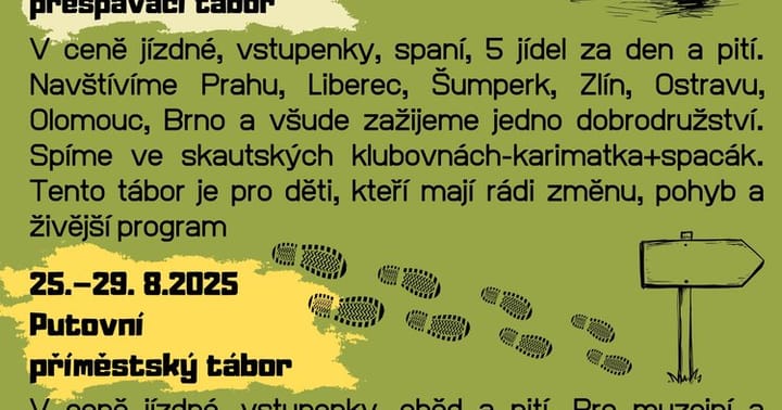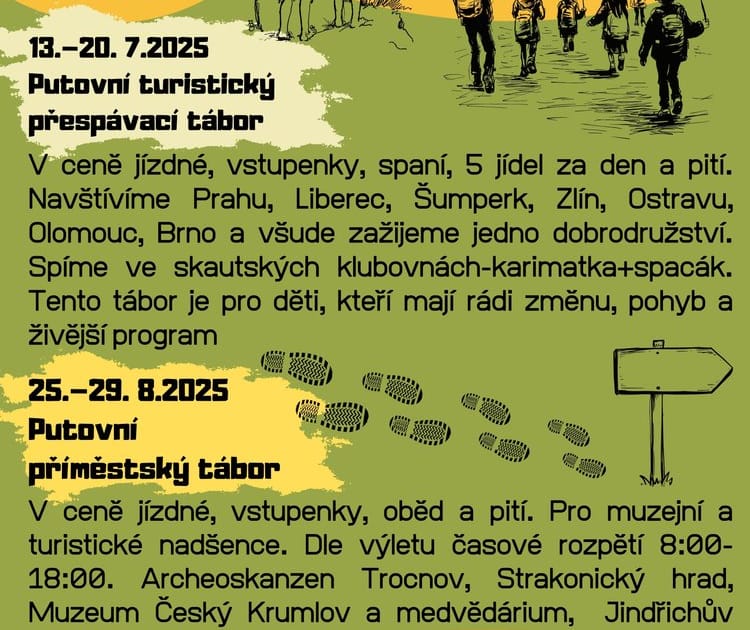 13.–20. 7.2025 PutovníČR přespávací tábor ubytování v okolí