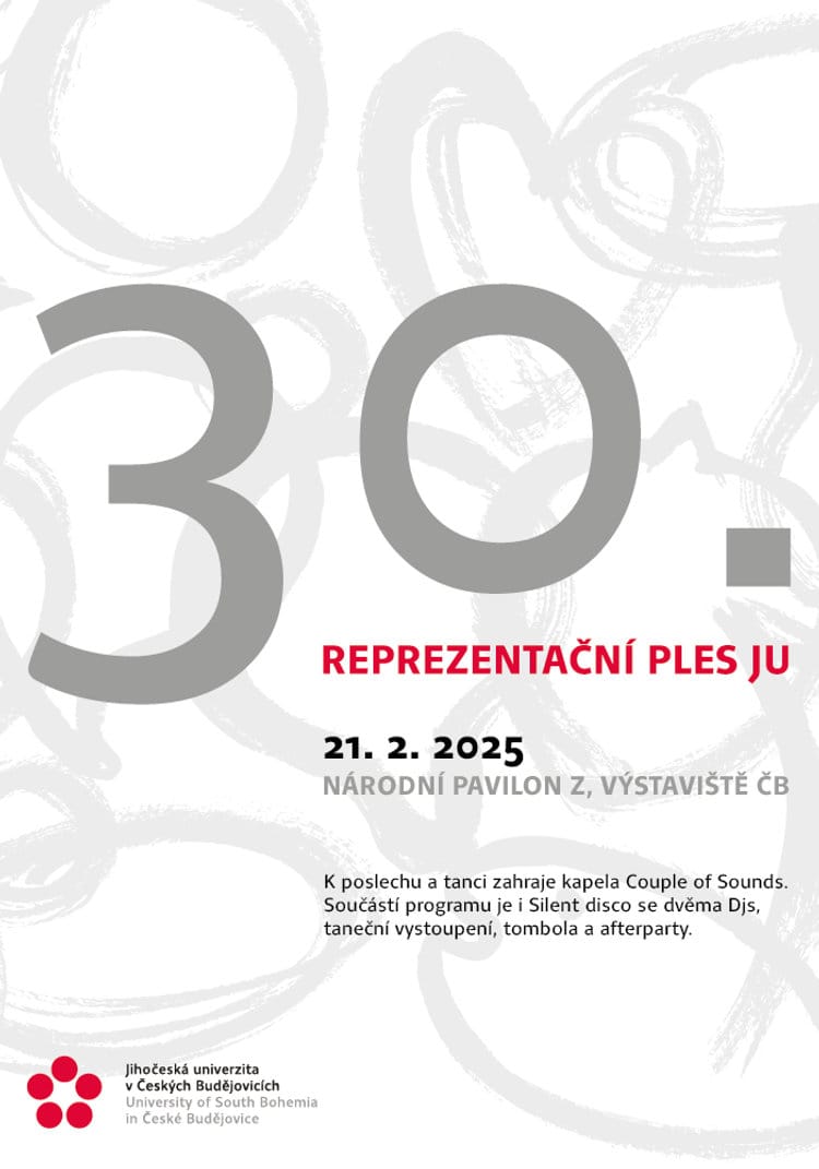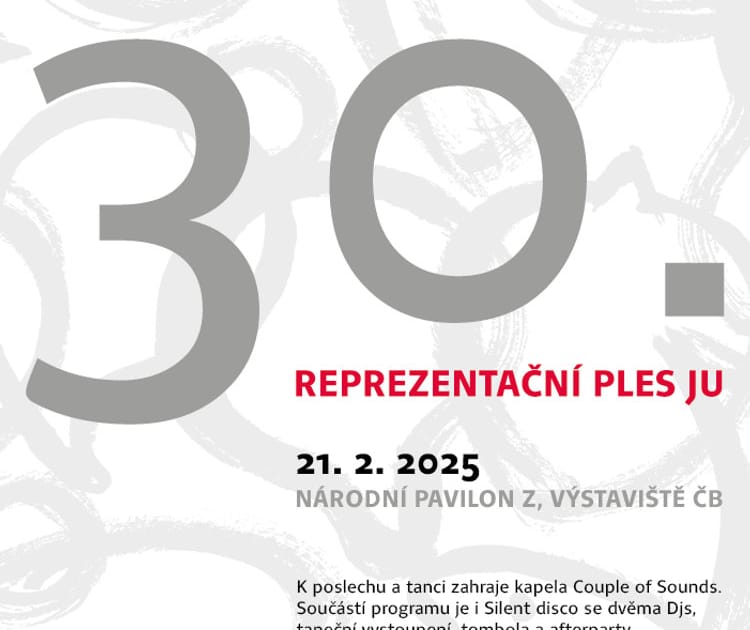 Jihočeská univerzita zve na jubilejní 30. reprezentační ples! A bude v novém kabátě: největší změnou je místo konání – potkáme se v Národním pavilonu Z českobudějovického výstaviště. K tanci zahraje skupina Couple of Sounds, všechny vstupenky půjdou do slosování o některou z krásných hodnotných cen od největších partnerů naší univerzity.