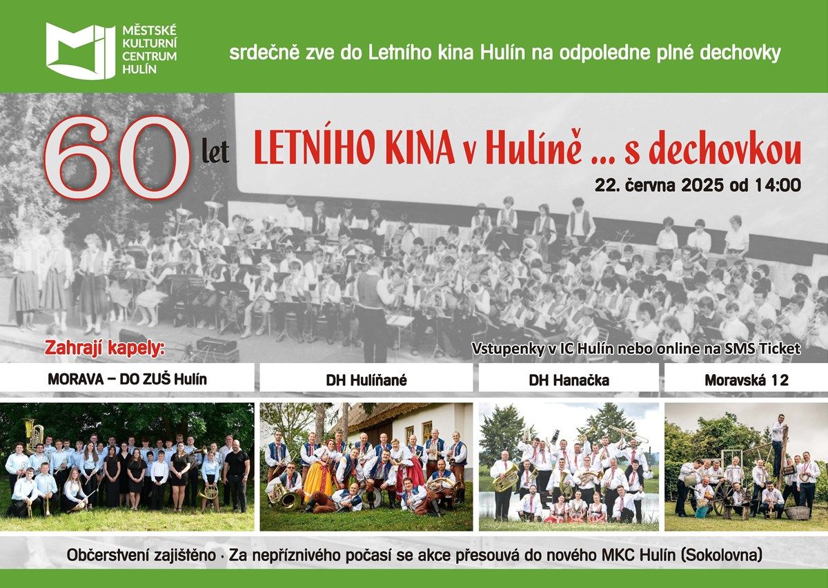 Městské kulturní centrum Hulín Vás srdečně zve do Letního kina Hulín na odpoledne plné dechovky – 60 let LETNÍHO KINA v Hulíně … s dechovkou.