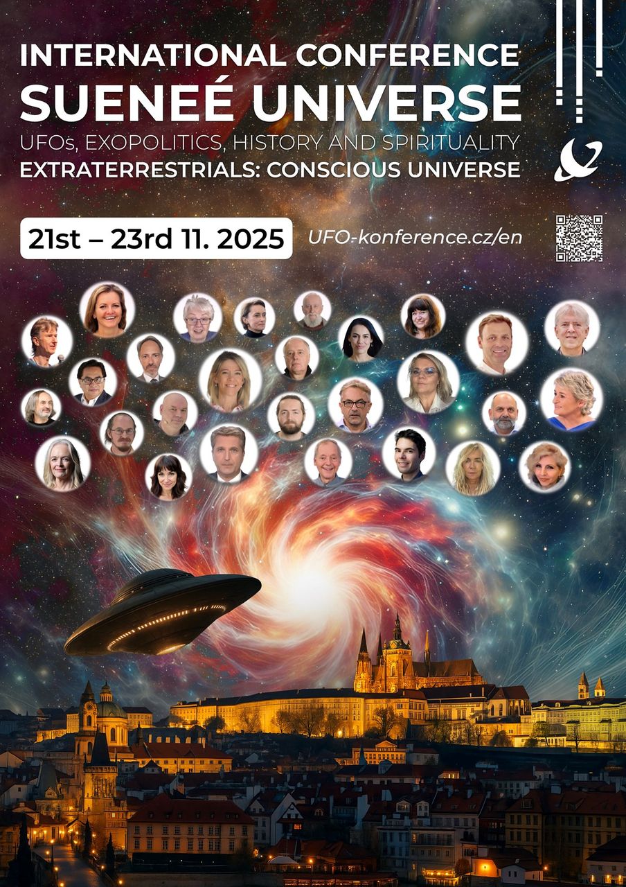 The news platform Sueneé Universe is organizing the 8th International Conference of UFO, Exopolitics, History and Spirituality on the topic NON-HUMAN INTELIGENCE AND CONSCIOUS UNIVERSE. It takes place in Dlabačov, Prague (Czech Republic) on the days of 21st, 22nd and 23rd November 2025.