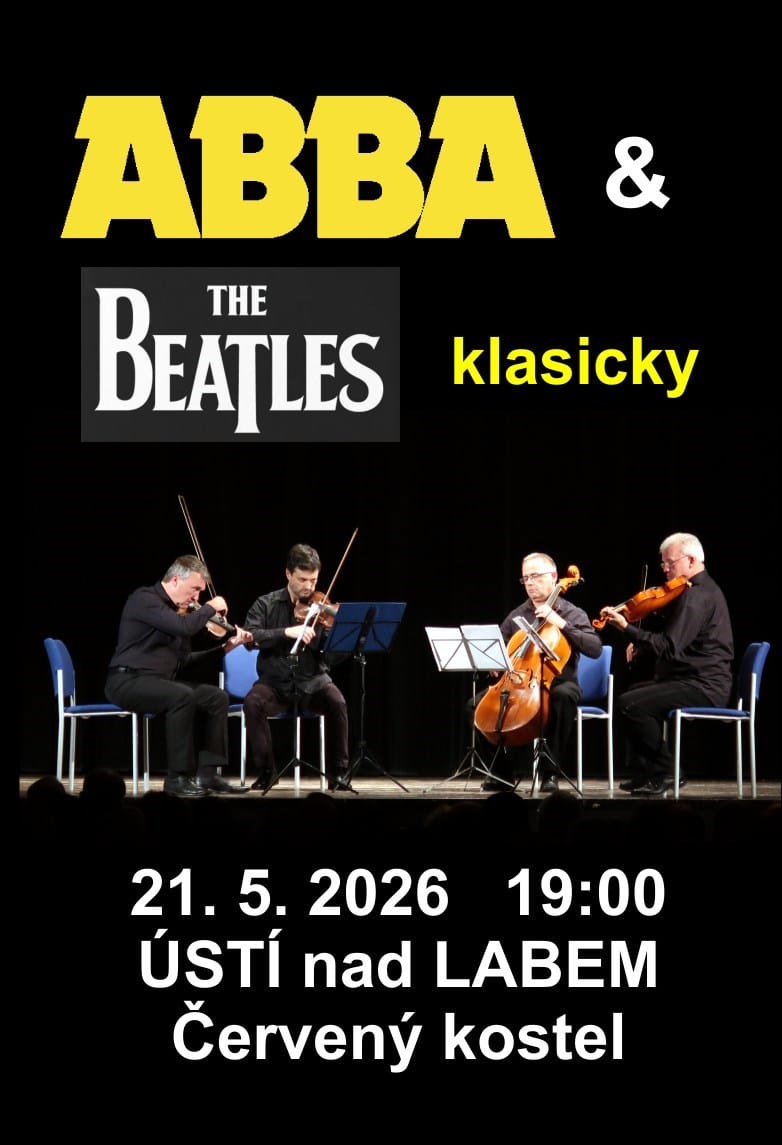 Pojďte si užít zbrusu nový koncert plný aranží písníček skupin ABBA a Beatles v unikátních aranžích Klárova smyčcového kvarteta do Červeného kostela v Ústí.