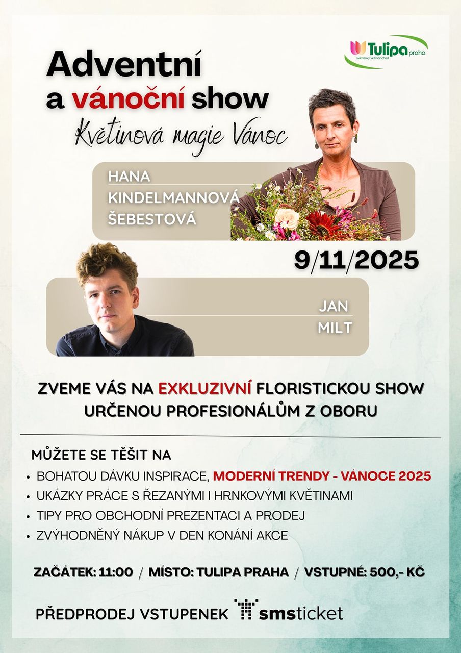 Zveme vás na exkluzivní floristickou show, určenou profesionálům z oboru, kteří chtějí načerpat inspiraci pro nadcházející vánoční sezónu. Připravte se na jedinečnou květinovou podívanou pod vedením Hany Kindelmannové Šebestové a Jana Milta.
