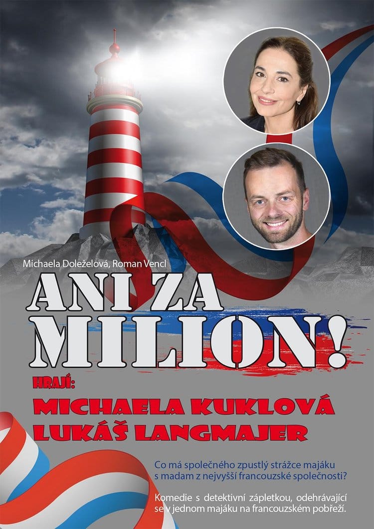 Brilantní komedie autorů Michaely Doleželové a Romana Vencla. Jacqueline má za manžela anglického velvyslance, přesto je to Francouzka tělem, duší i původem. Má dvě děti a kufřík s milionem eur, který je ochotna dát každému, kdo si ho zaslouží. Nenávidí venkov, samotu a obyčejnost. Lambert manželku nemá, utekla od něj. Zato má námořnickou duši a svůj maják, o který se stará čtyřiadvacet hodin denně, sedm dní v týdnu. Miluje venkov, samotu a obyčejnost. Jeden druhého neznají, a kdyby vše bylo jak má, nikdy by se ani nesetkali.