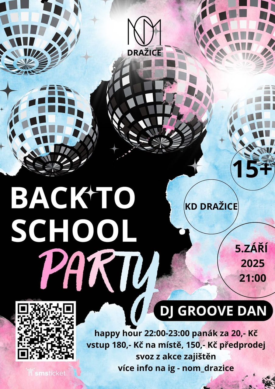 zveme Vás na ​Back to school party do KD Dražice, tak kupte vstupenku, vezměte kamarády a neváhejte přijít!