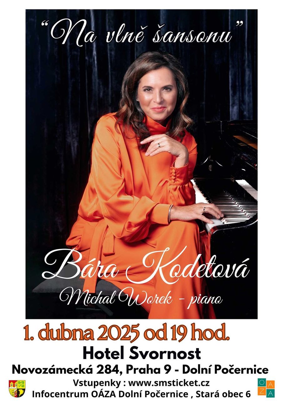 Bára Kodetová je ženou mnoha talentů s velkým srdcem a výjimečným emocionálním hereckým i pěveckým projevem. Její šansonové recitály jsou unikátním zážitkem. V programu Na Vlně šansonu Bára Kodetová s doprovodem pianisty Michala Worka provede české i světové písně z oblasti popu i šansonu. Komponovaný program Báry Kodetové se odehrává se speciální scénou. Bára Kodetová písně prokádá čtením a vzpomínkami na své blízké.