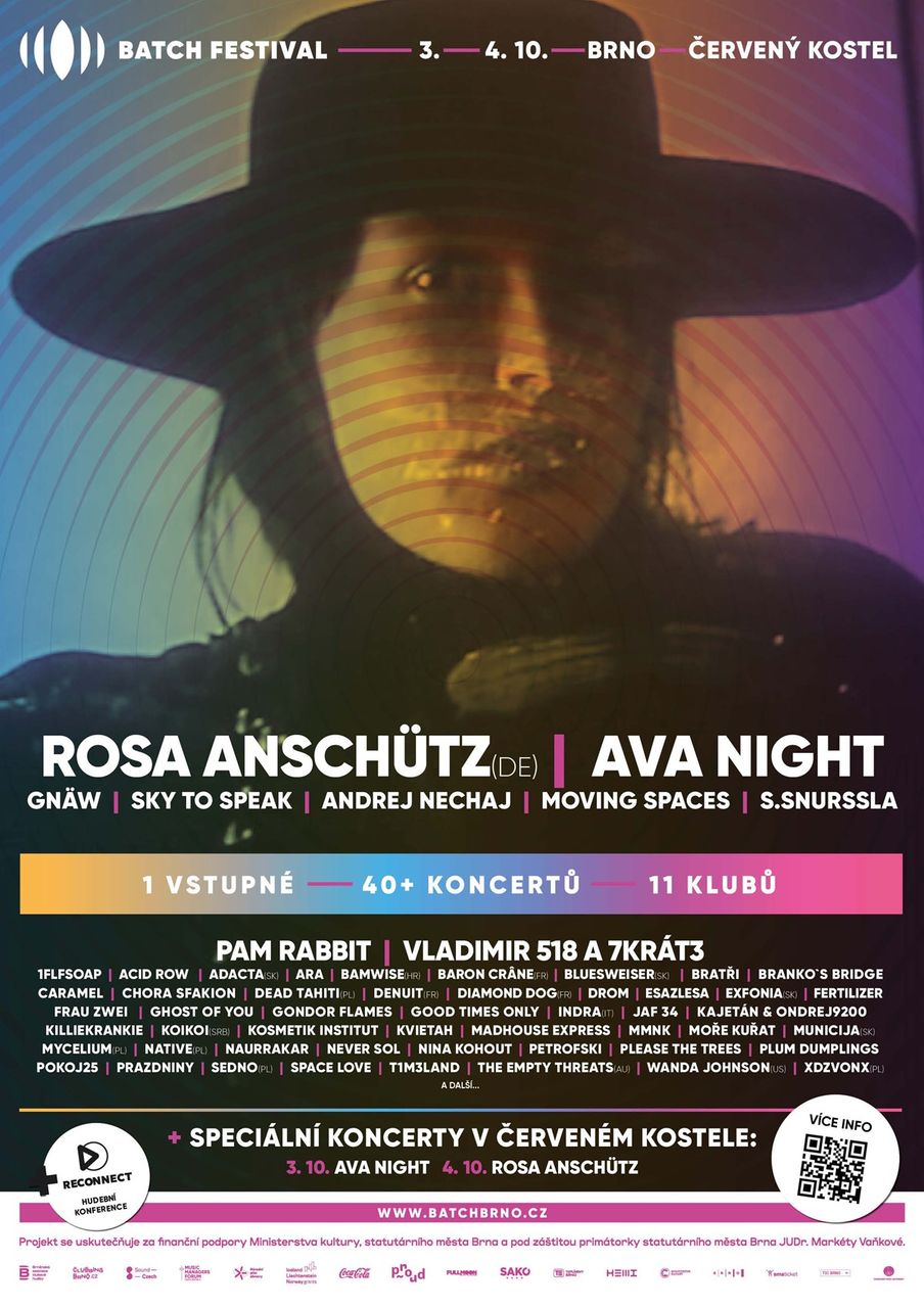 Letošní ročník klubového festivalu Batch nabídne v sobotu 4. října netradiční večer v Červeném kostele, kde zahraje německá muzikantka a zvuková umělkyně Rosa Anschütz. Ta ve své tvorbě spojuje kompozici, instalaci a performance. Mísí temnou atmosféru post-punku a cold wave s éterickou polyfonií a syntetickými melodiemi.