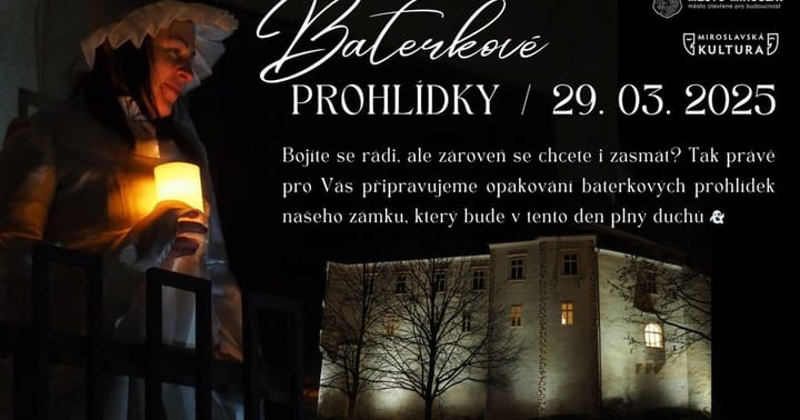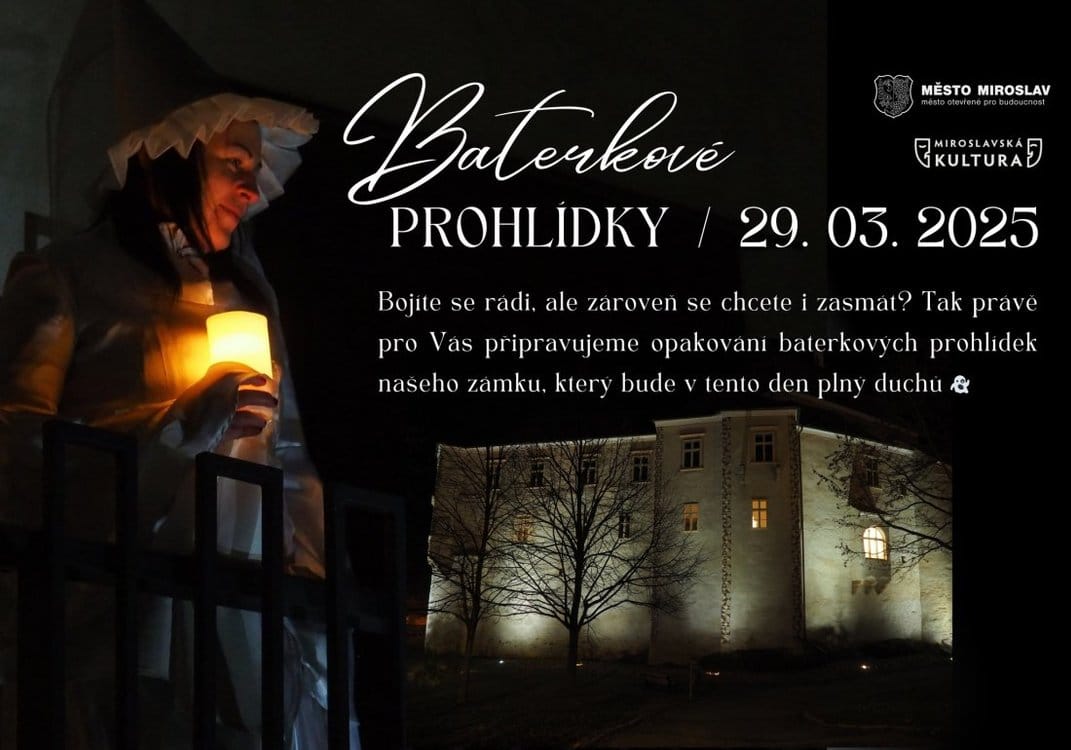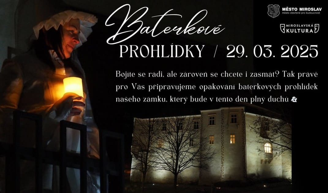 Pro velký úspěch se speciální večerní prohlídky Miroslavského zámku za svitu svíček a baterek, které pobíhaly v závěru roku 2024, budou opakovat i v březnu 2025! Od 19 hod. se těšte na dobrodružné prohlídky setmělého zámku v pravidelných časových intervalech. Opět je oživí strašidla a duchové i postavy z místní historie. Nutná je vlastní baterka s sebou a předchozí rezervace na tel. č.: 735 173 153!