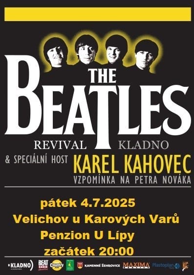 Jedinečný koncert v pátek 04.07.2025 od 20:00 na nádherném parketu penzionu U Lípy ve Velichově u Karlových Varů. Legendární Karel Kahovec vystoupí společně s jednou s nejlepších světových Beatles Revival kapel – The Beatles Revival