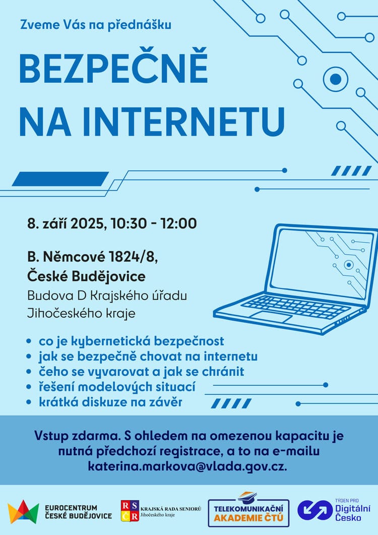 Zveme především seniory na přednášku o bezpečnosti na internetu.