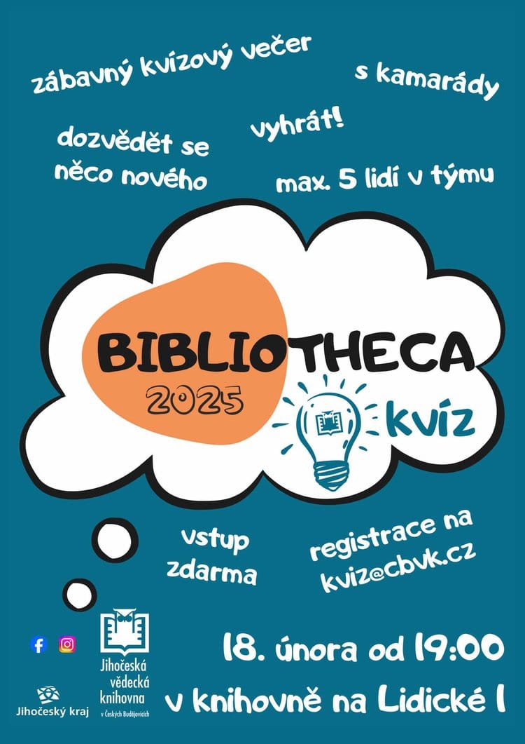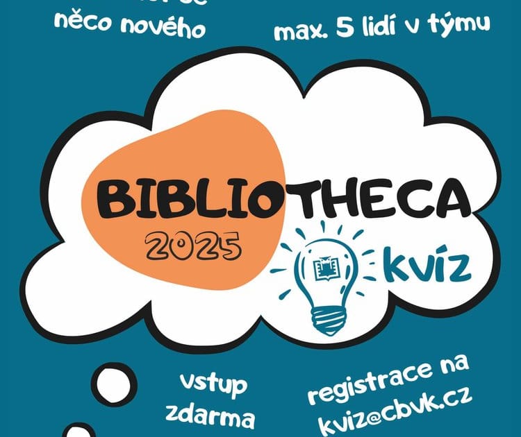 Zábavný kvízový večer. Přijďte s partou kamarádů prověřit své znalosti nebo se dozvědět něco nového – nejen o knihách. Max. 5 lidí v jednom týmu. Rezervace nutná na kviz@cbvk.cz.