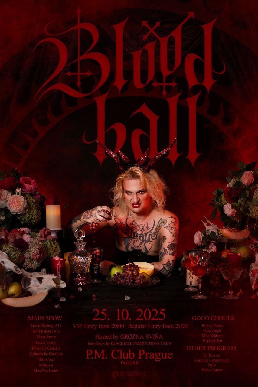 Blood Ball je Halloweenská párty v srdci Evropy. Jde o jedinečný pražský queer event, který vás vytáhne ze všední reality do světa plného temných nádherností, bizarních obscéností, okouzlujících kostýmů a všeho divného a neobvyklého.