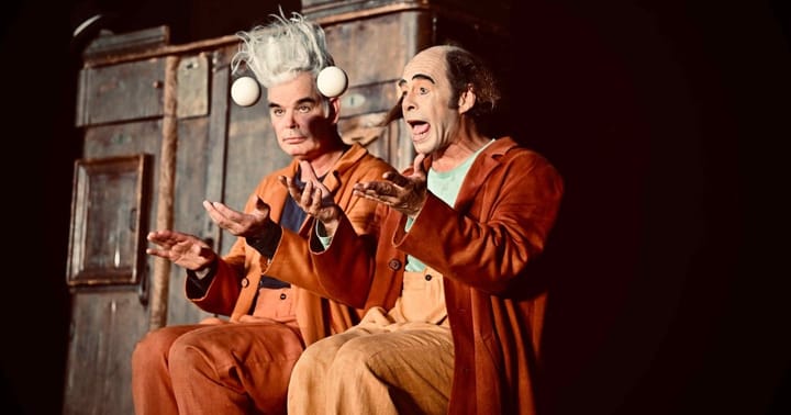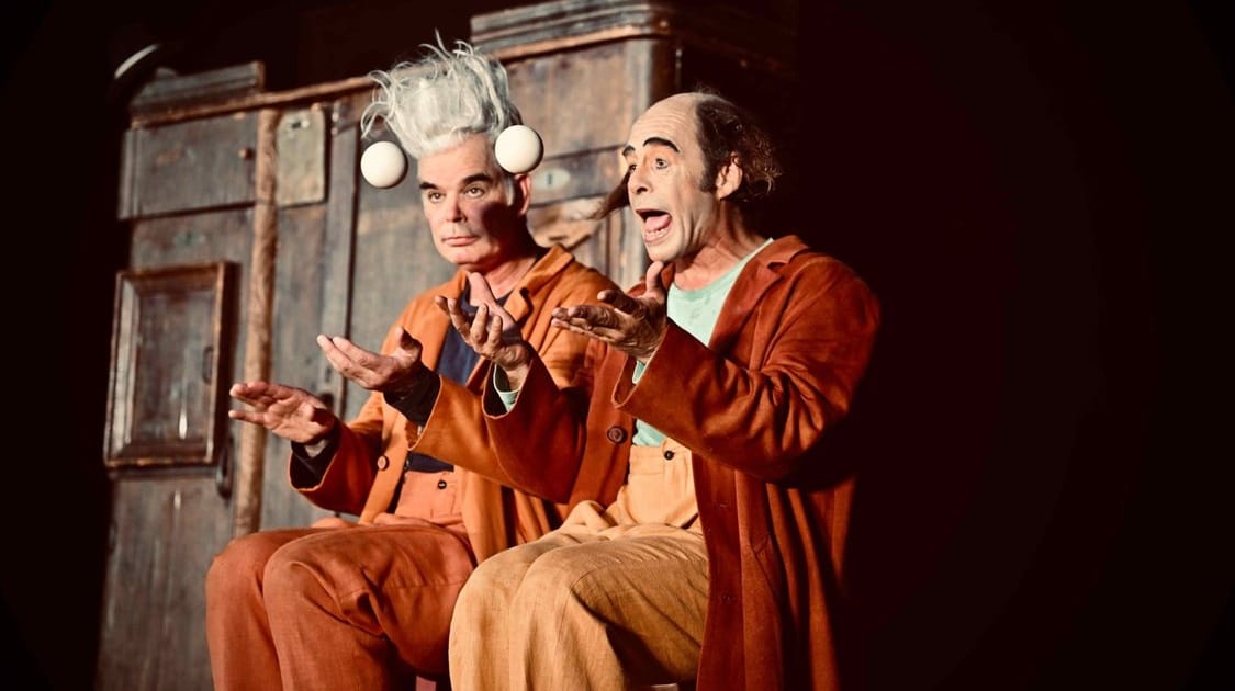Dvojice komické dvojice ze Švýcarka slaví 25 let své existence! Jejich nová komická, vizuální divadelní show plná klaunských čísel z jejich repertoáru je jako čokoládový dort zdobený čokoládovými lupínky s kandovanými červenými třešněmi! Přijďte ochutnat jejich výměnu rolí a neustálý boj o sympatie diváků a lavinu smíchu.