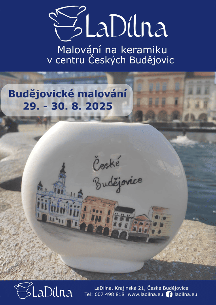 Během festivalu Město lidem lidé městu pro Vás bude v LaDílně připraveno malování na téma našeho krásného města – přijďte si v prodloužené otvírací době vytvořit svůj originální kousek keramiky s motivy dominant Českých Budějovic. K dispozici budou budějovická razítka, ale využít můžete i jakoukoli jinou techniku. Se vším Vám rádi pomůžeme.