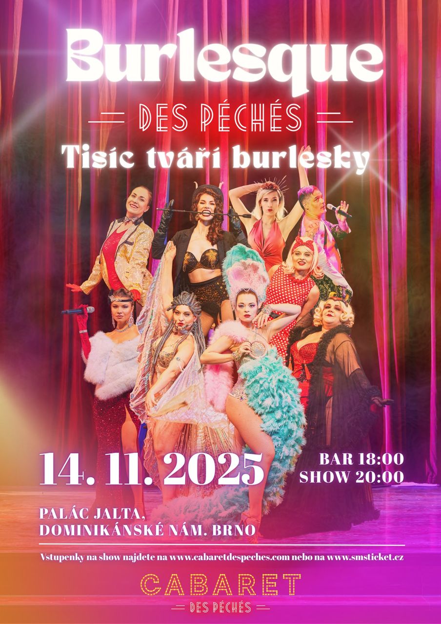 Přichází galerie živých obrazů, kde každé číslo vypráví jiný příběh touhy, odvahy a hříchu. Burlesque des Péchés vás zve na výlet do krajiny fantazie, kde každá performerka – i každý performer – odhalí svou vlastní verzi burlesky. A věřte, že jich je víc než tisíc.