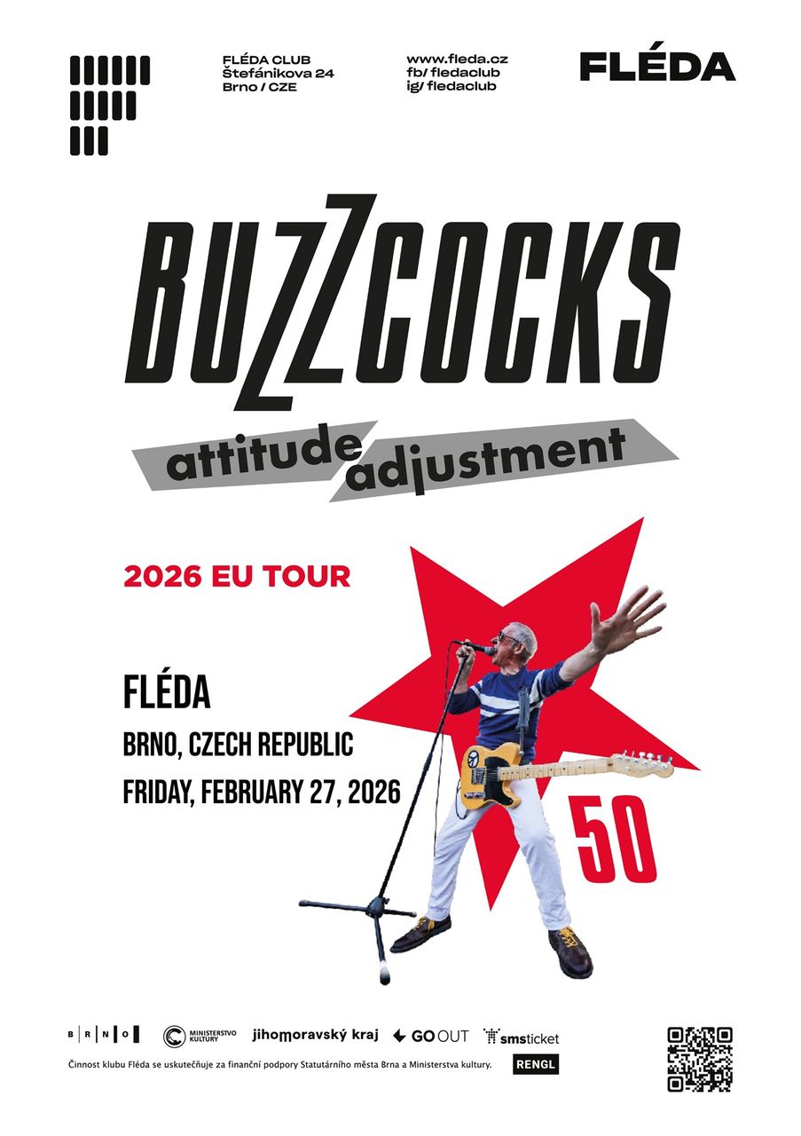 Legendární britská punková kapela Buzzcocks slaví 50 let na scéně a při té příležitosti dorazí 27. února 2026 do brněnského klubu Fléda. Kapela, která už od 70. let formuje podobu punku a inspirovala nespočet následovníků, přiveze průřez největšími hity i energii, díky níž zůstávají jednou z nejživějších ikon žánru. Nenechte si ujít výroční koncert, který připomene půl století punkové historie.
