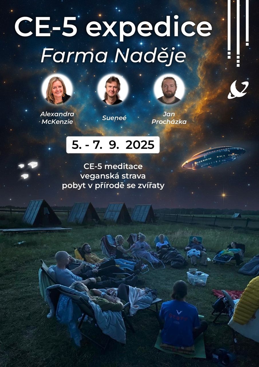Přidej se společně s Alexandrou McKenzie, Honzou Procházkou a Sueneém k víkendovému setkání uprostřed přírody na Farmě Naděje, kde skrze klid, sdílení, meditaci a seznámení se s CE-5 protokolem prozkoumáme možnost vědomého kontaktu s mimozemskými civilizacemi, tvojí hvězdnou rodinou – a především sami se sebou. Ano, cesta do vesmíru vede skrze vesmír v každém z nás!