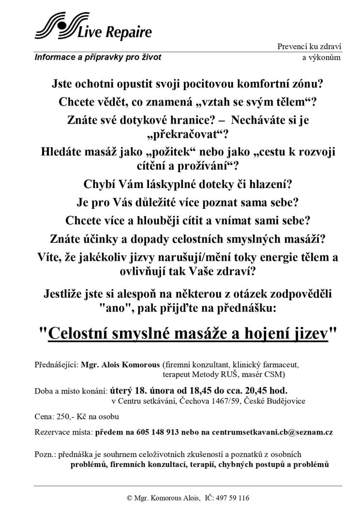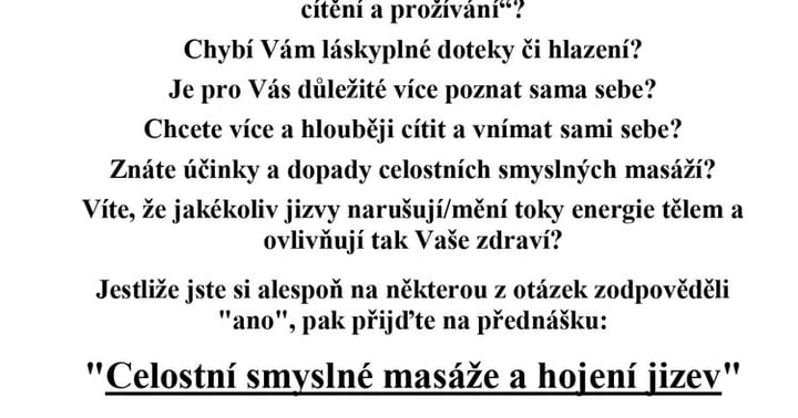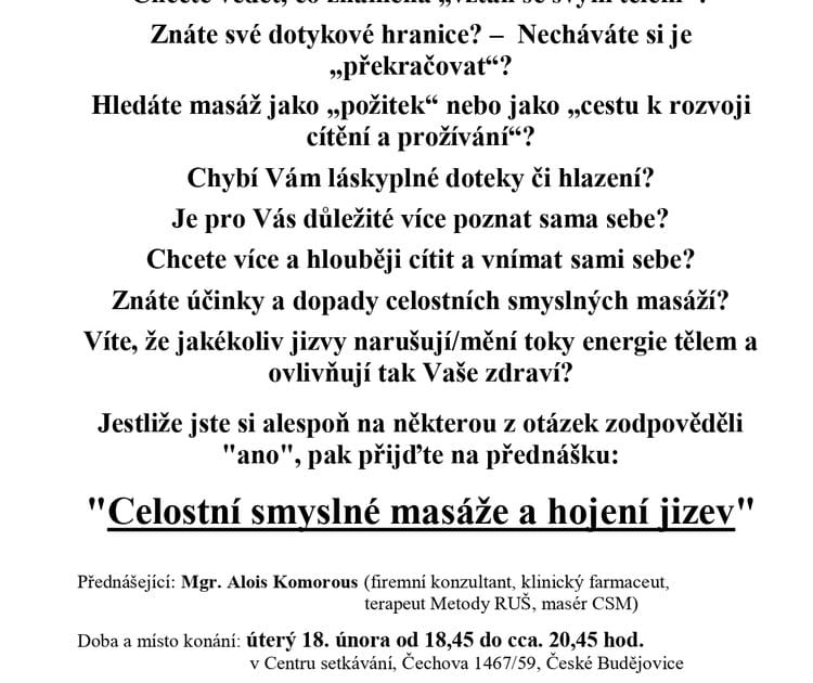CELOSTNÍ SMYSLNÉ MASÁŽE a HOJENÍ JIZEV
