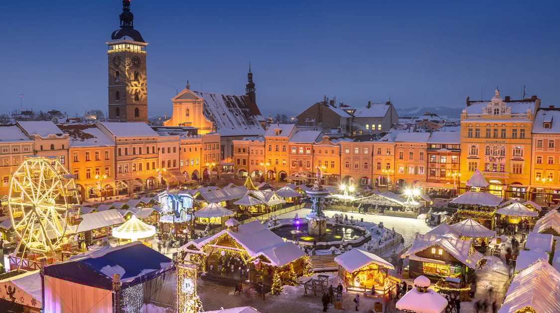 V adventním čase ožívá Náměstí Přemysla Otakara II. a radniční nádvoří v Českých Budějovicích kouzelným vánočním trhem.