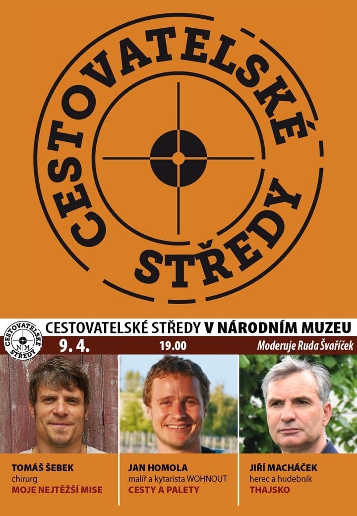 Večer v Národním muzeu s hosty Tomášem Šebkem, Janem Homolou a Jiřím Macháčkem přinese zajímavá témata: Thajsko, rodinná traumata, hudbu, malířskou paletu a mnohá další.
