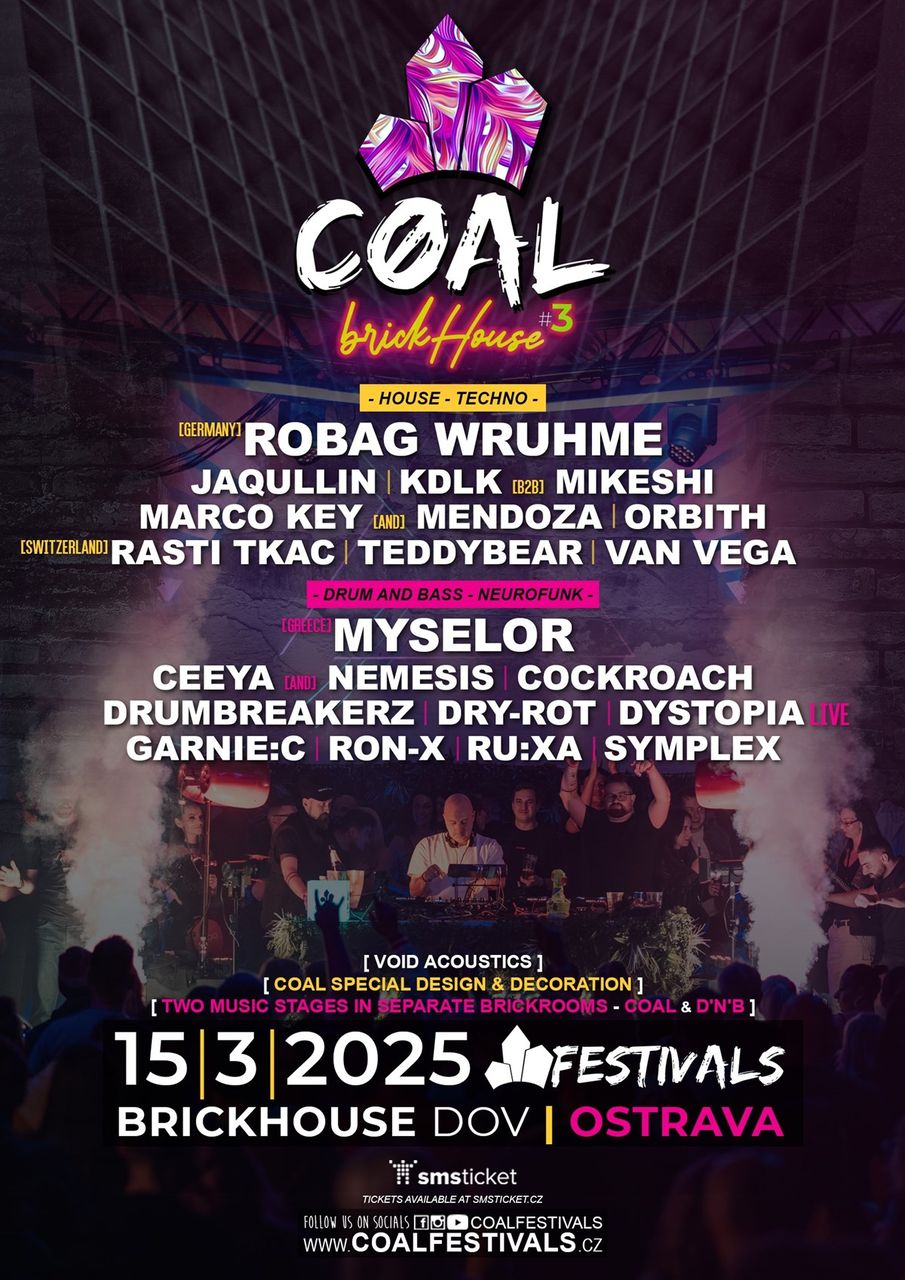 Druhá edice COAL brickHOUSE w. OXIA byla naprosto úžasná – plný parket, skvělá energie a nezapomenutelná atmosféra. Vaše podpora nás motivovala posunout to ještě dál, a proto jsme se rozhodli přidat do třetí edice druhou stage! Tentokrát se můžete těšit na ještě větší hudební jízdu na dvou pódiích house & techno a drum and bass. Opět vás čeká špičkový VOID sound systém a propracovaný stage design. Připni se na event. Stay tuned, more info coming soon…