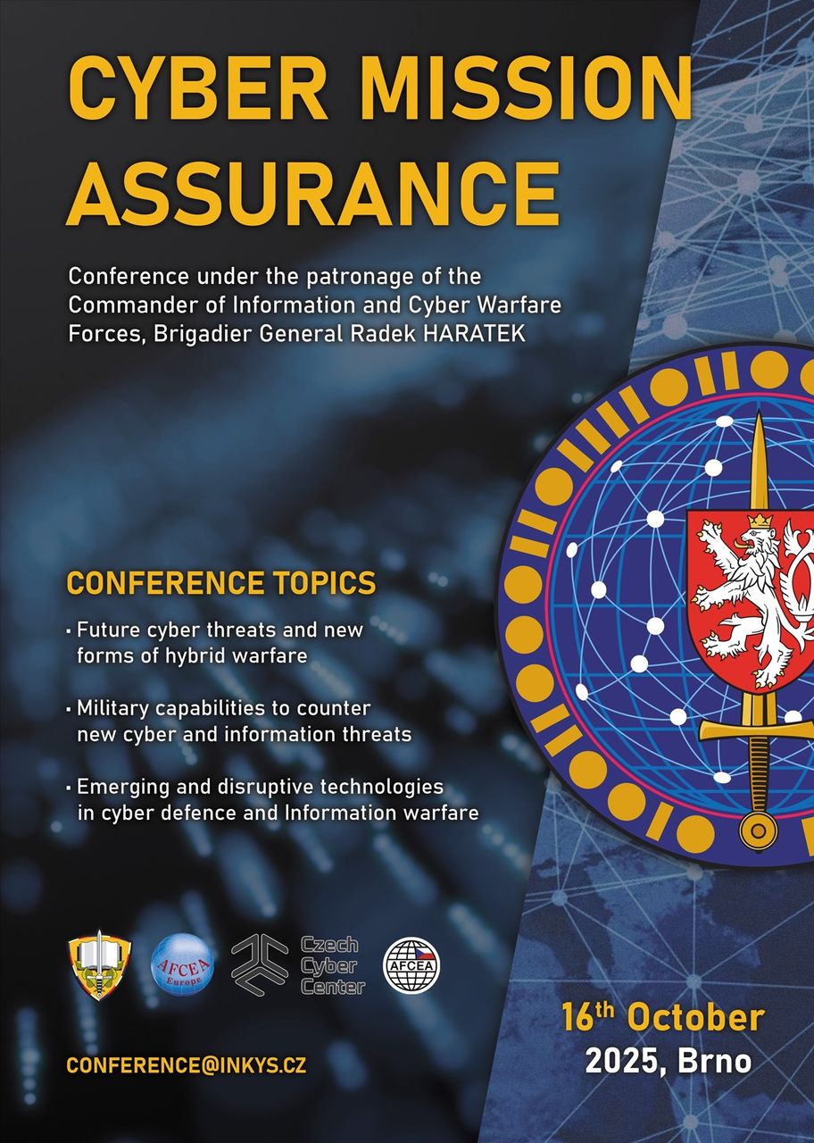 One-day international professional conference CYBER MISSION ASSURANCE focused on future evoluzion of cyber and related hybrid threats that armed forces must prepare for, as well as capabilities required for effective defense. The conference provides a platform for leading experts, representatives from NATO member states and relevant companies and organizations in cyber defence and hybrid threats field.