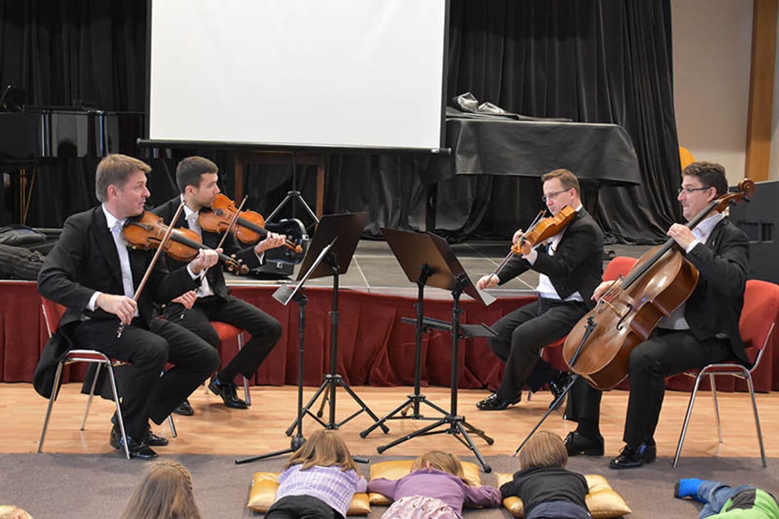 Čtyři naprosto rozladění hráči na smyčcové nástroje. Nejen že jim neladí hudební nástroje, ale ani oni sami nevypadají, že by mohli koncertovat. Rozcuchané vlasy, neupravený vzhled, rozladěná nálada. Dokonce to vypadá, že se mezi sebou zcela rozhádají. Bude potřeba vše naladit. Hudebníky, jejich nástroje a samozřejmě i jejich posluchače. Snad vše povede ke zdárně naladěnému koncertu.