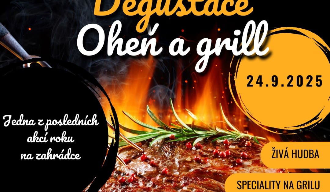 Ve středu 24.9.2025 Vás na naší zahrádce čeká pětichodové menu, kde hlavní roli bude hrát oheň a grill – stejně jako naši kluci Peťa a Jarda, kteří pro vás připraví zážitkový večer plný chutí i atmosféry.