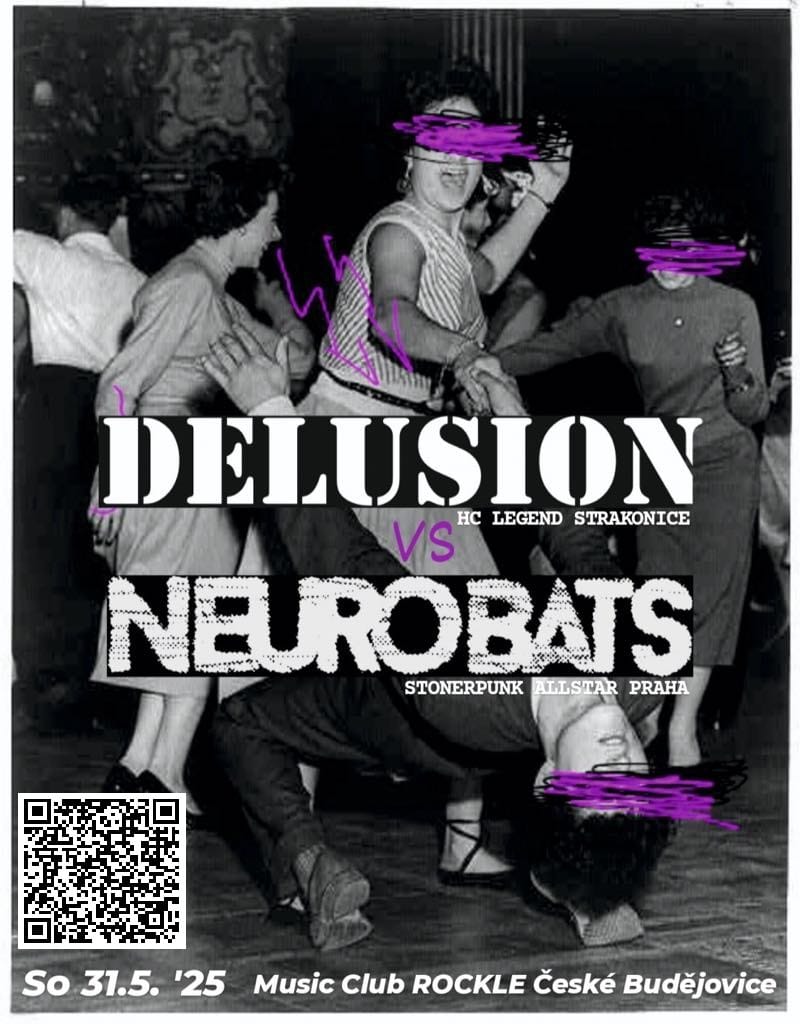 Zveme tě na večer plný dunivých riffů a syrové energie! Neuro Bats (stoner) a Delusion (hardcore) rozvibrují zdi budějovického klubu Rockle. Přijď si užít hutné kytary a atmosféru, co tě pohltí. Tohle nebude jen koncert – to bude nářez, který nechceš prošvihnout!
