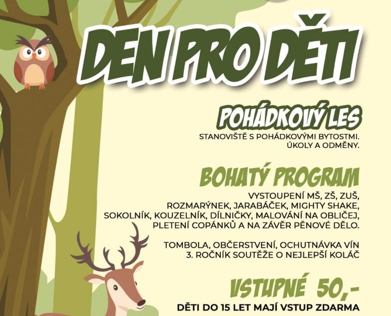 Lovecká chata Myslivna (jen kousek za Hrušovany nad Jevišovkou) zve na rodinnou akci uprostřed přírody a tak trochu „na samotě u lesa“. Přijeďte se i s dětmi dobře pobavit – čeká vás bohatý program, včetně Pohádkového lesa s plněním úkolů, hudebních i tanečních vystoupení, určitě přijde i kouzelník a sokolník, a připraveny budou i kreativní dílničky a na závěr pěnové dělo. Dospělí ocení ochutnávku vín, tombolu, ale i 3. ročník soutěže O nejlepší koláč.