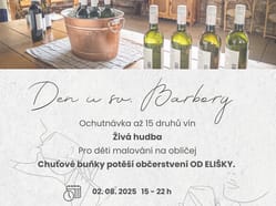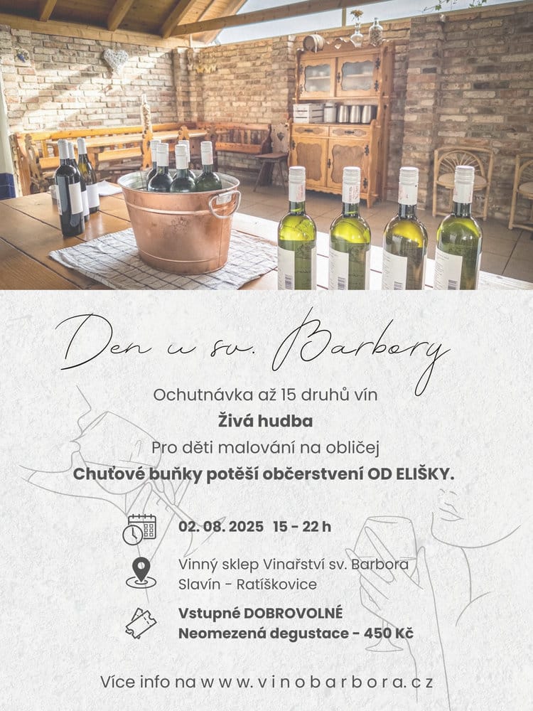 3. ročník degustace vín Vinařství sv. Barbora se uskuteční v sobotu 2. 8. 2025 od 15. hodin v prostorách našeho sklepa.