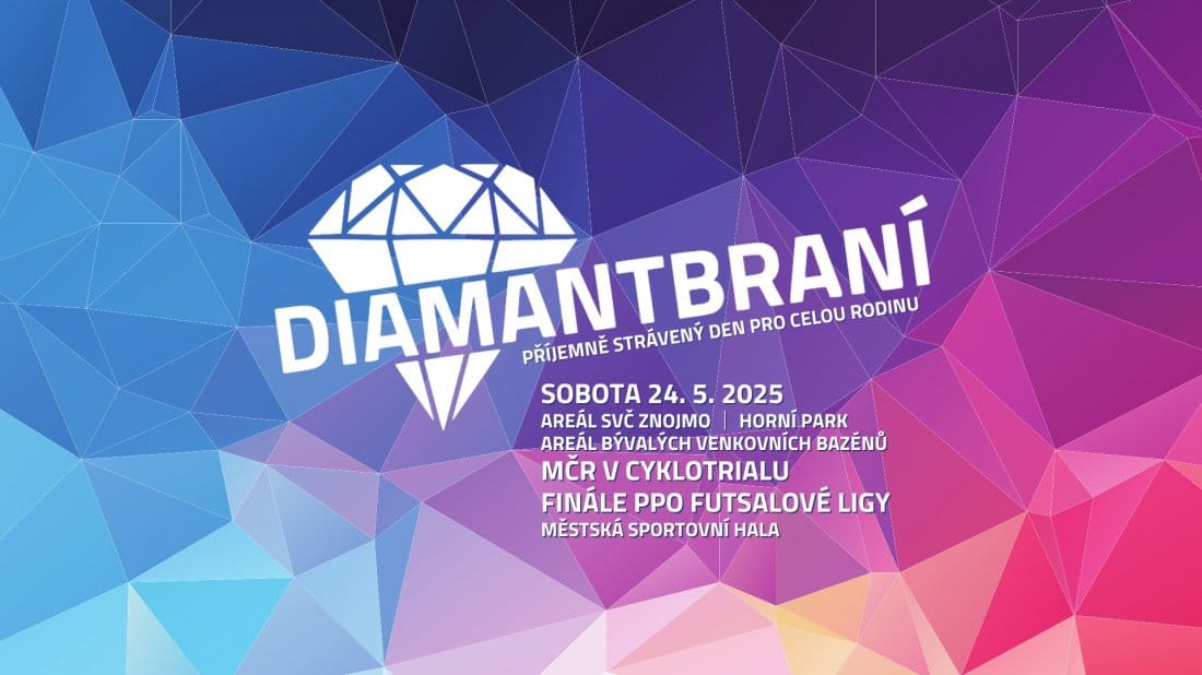 Na rodinný festival plný sportovních aktivit, zábavy a vystoupení zve ověřená akce Diamantbraní, kterou každoročně pořádá Středisko volného času Znojmo. Program festivalu je pestrý a koná se ve městě na více místech najednou. Během dne tak můžete navštívit jak atrakce v Horním parku v Husových sadech (skákací hrad, malování na obličej, představení uniformovaných složek, šlapací autíčka apod.), přijít fandit na finálový den futsalové ligy SVČ či shlédnout mistrovství ČR v cyklotrialu ve venkovním areálu bývalého plaveckého bazénu u Lázní. Celým programem bude provázet známý moderátor rádia Krokodýl Petr Holík. Během dne si rovněž můžete zasoutěžit o zapůjčení auta na celý víkend s plnou nádrží a čekají Vás i různorodé workshopy. Festival je návštěvníkům otevřen celý den od 10 do 18 hod.