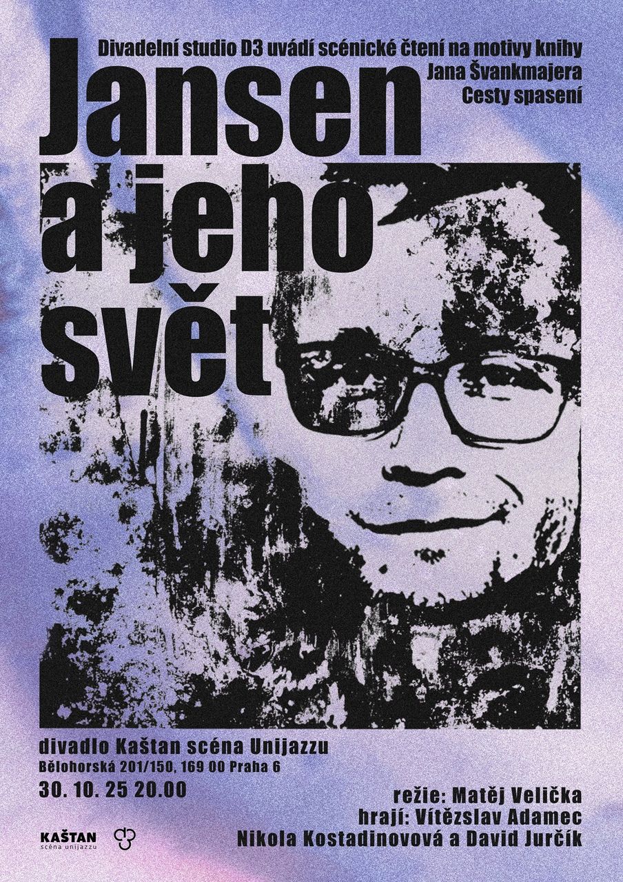 Prazákladním zdrojem pro scénické čtení Jansen a jeho svět je Švankmajerova kniha Cesty spasení. Ve své úplnosti obsahuje mj. deníkové záznamy, krátké texty či divadelní hry, které významný spisovatel, dramatik, výtvarník a režisér posbíral během posledních let. Jan Švankmajer se tu s nadhledem a humorem, v souboji surrealismu s čecháčkovskou realitou, dotýká nejen stavu společnosti. Píše o literatuře a politice a vytváří tok myšlenek a postřehů. A právě jedna z dějových linek knih, absurdně laděná, eskalující prakticky v nestoudnou dystopii – potřeba zrušit státy a založit knížectví, v nichž hlavní metou je stát se nevolníkem a tedy součástí systému – inspirovala režiséra Matěje Veličku.