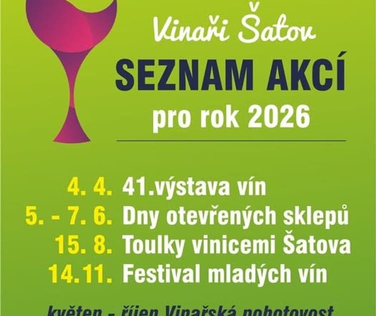 První červnový víkend patří již dlouhá léta otevřeným sklepům v Šatově a ani letos tomu nebude jinak. Dvacítku sklepů pro vás vinaři otevřou už v pátek odpoledne a nabídnou to nejlepší ze své úrody. Chybět samozřejmě nebude ani muzika a skvělé občerstvení.