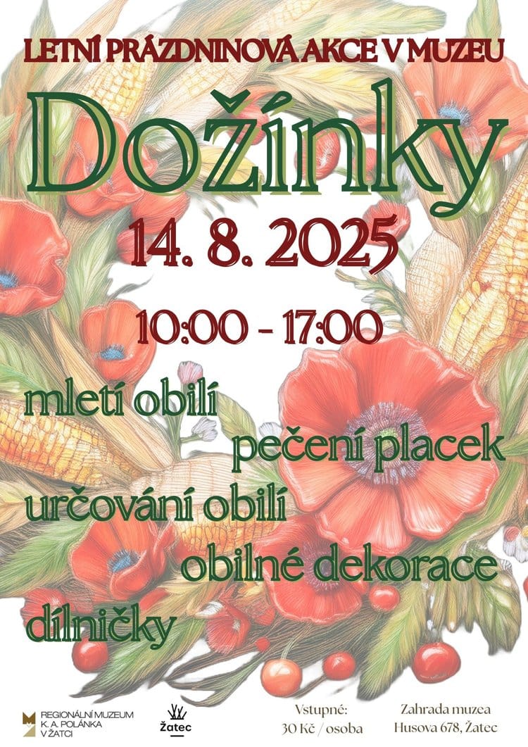 Regionální muzeum K. A. Polánka v Žatci zve na letní prázdninovou akci Dožínky, kterou chystáme na čtvrtek 14. srpna 2025 v zahradě muzea (Husova 678) od 10 do 17 hodin.