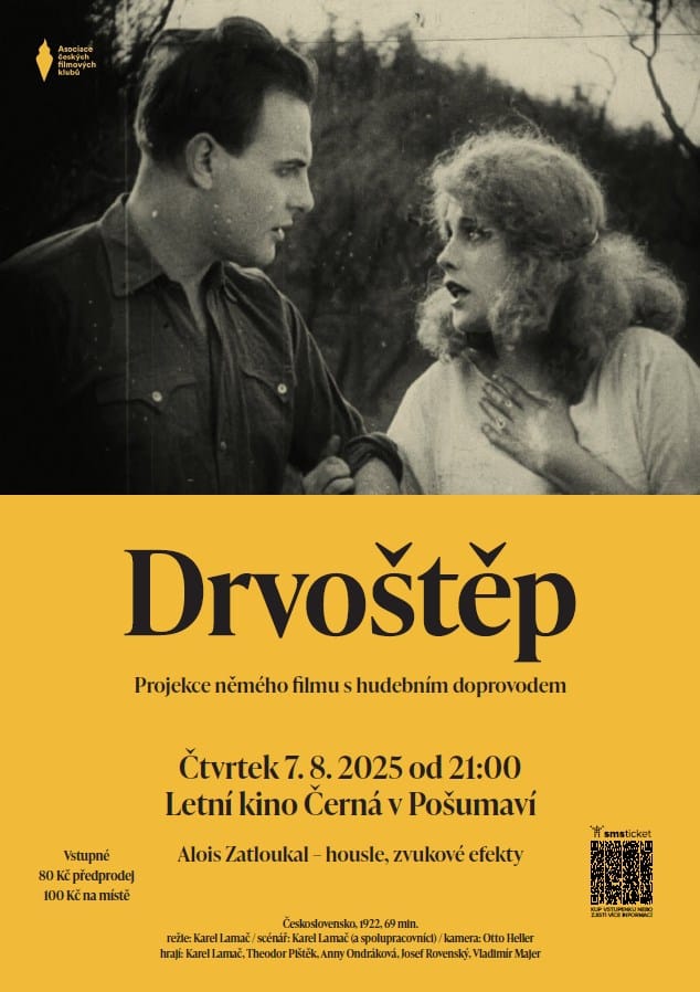 Ve čtvrtek 8. srpna 2025 od 21:00 se v letním kině v Černé v Pošumaví uskuteční jedinečná filmová událost. Diváci zhlédnou němý film Drvoštěp z roku 1922, který bude doprovázen živou hudbou v podání Aloise Zatloukala na housle a s použitím zvukových efektů.