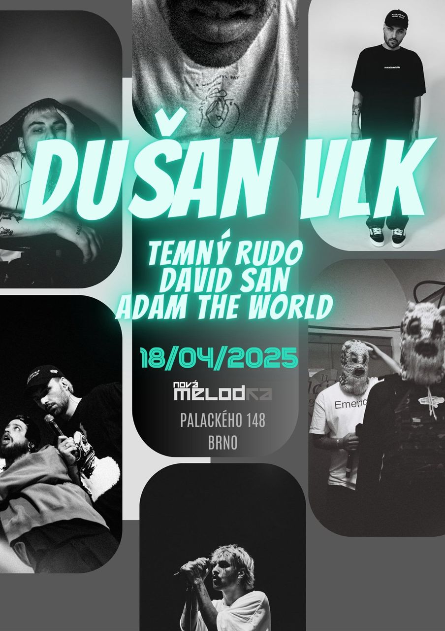 Dušan Vlk patří mezi nejvýraznější jména současného slovenského rapového undergroundu. Jeho hudba kombinuje trapovou basu, phonkové cowbelly i postpunk a vytváří syrový, melancholický zvuk s autentickým rukopisem, který je obalován v melancholické LO-FI estetice. Na Melodce představí průřez svou tvorbou od debutového Asthmaboy přes Korporát až po aktuální projekt Babie leto v podzemí.