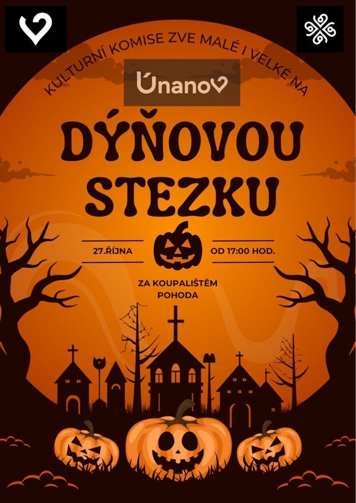 Na trochu strašidelnou Halloweenskou stezku se můžete po setmění s dětmi vypravit také do Únanova. Startuje se v 17 hod. za areálem koupaliště a autokempu Pohoda.