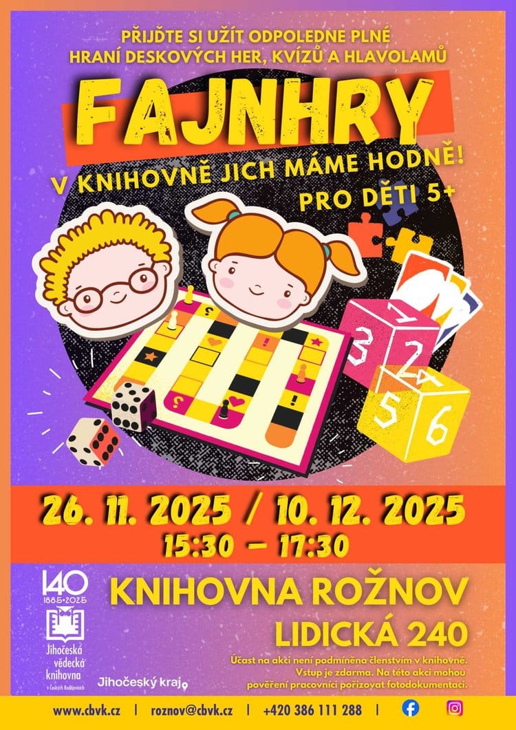 Přijďte si užít odpoledne plné hraní deskových her, kvízů a hlavolamů. V knihovně jich máme hodně. Pro všechny hravé děti 5+.