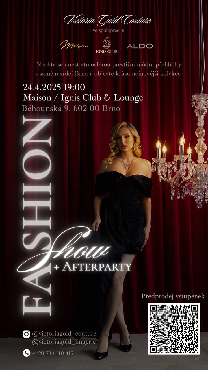 Přijd’te si užít nezapomenutelný večer plný elegance, luxusu a krásy na exkluzivní přehlídce Victoria Gold Couture, která se bude konat 24.4.2025 v prestižním prostoru Maison Club Lounge v Brně!