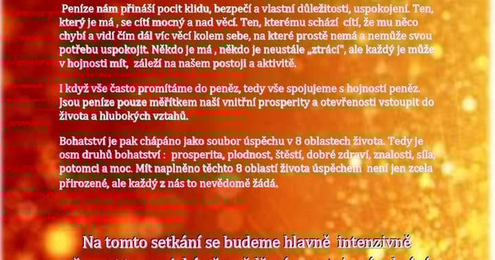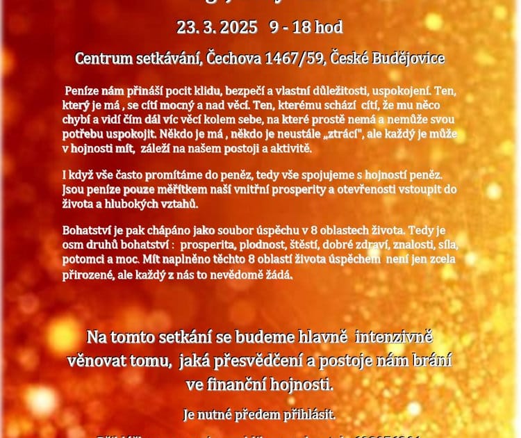 Na tomto semináři budeme intenzivně odhalovat, jaká přesvědčení a postoje nám brání ve finanční hojnosti.
