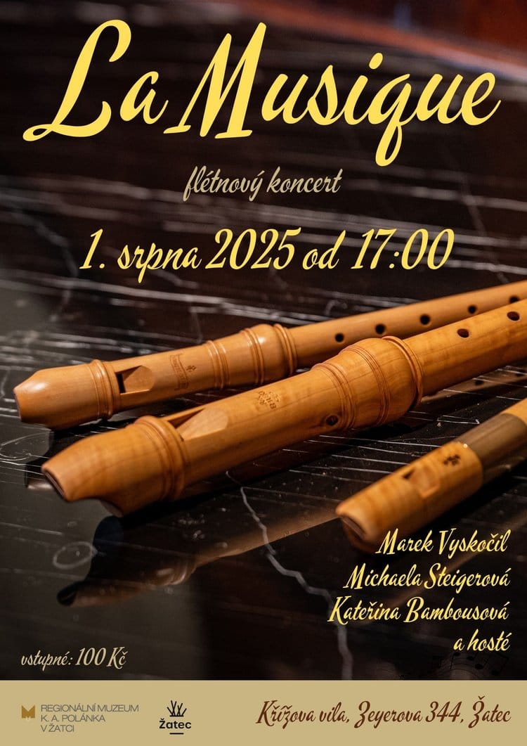 Regionální muzeum K. A. Polánka v Žatci srdečně zve na flétnový koncert La Musique, který se uskuteční 1. srpna 2025 od 17 hodin v prostorách Křížovy vily (Zeyerova 344).