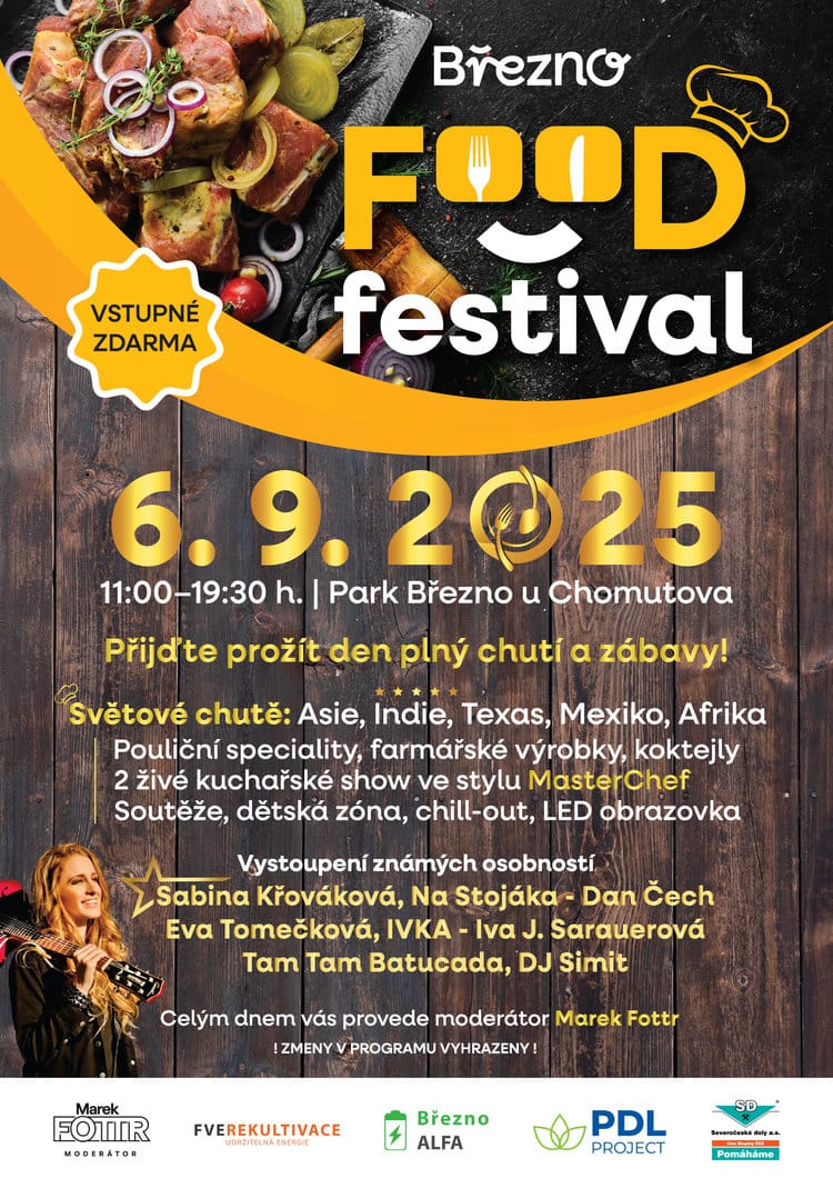 Březno FOOD festival 2025 proběhne v sobotu 6. září 2025 od 11:00 do 19:30 v obecním parku v Březně u Chomutova. Festival je otevřený široké veřejnosti a vstup je zdarma.