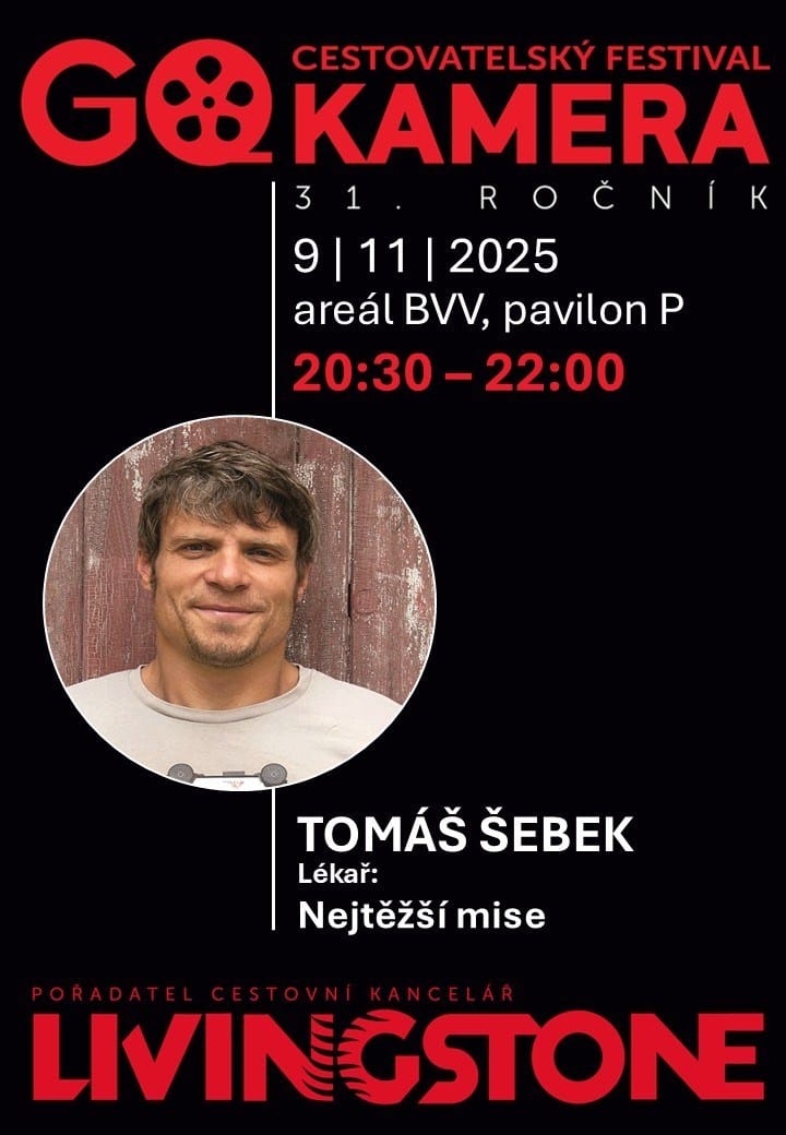 CESTOVATELSKÝ FESTIVAL GO KAMERA 8.11.- 11.11.2025 pořádá CK LIVINGSTONE. O nejlepší filmy, fotografie a zážitky z cest se dělí významné osobnosti rozmanitých oborů. Máte jedinečnou možnost setkat se známými cestovateli, dobrodruhy, horolezci, fotografy, lékaři nebo publicisty.