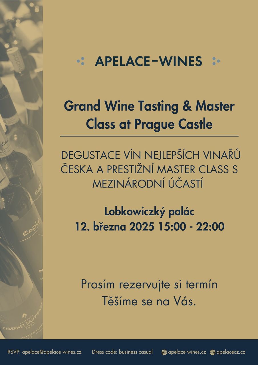 Obchodní společnost Apelace – Wines pořádá první exkluzivní prezentaci a degustaci vín s garancí kvality na Pražském hradě. Představí se zde vína a vinaři klasifikačně- apelačního systému APELACE CZ, dále nejznámější vinice a jejich vína i nejvýznamnější vinařští hosté.