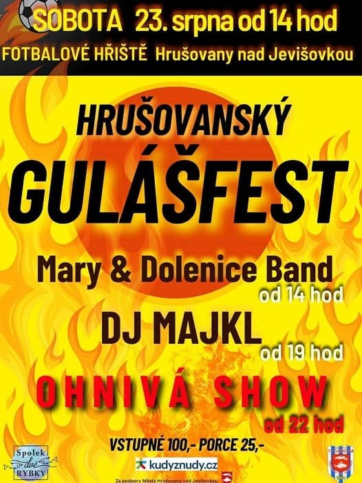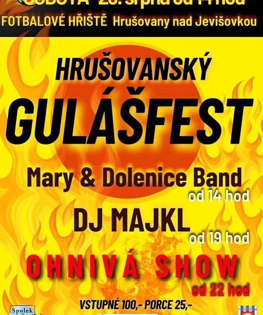 Čtvrtý ročník gastronomického festivalu zasvěceného nejrůznějším druhům gulášů se v Hrušovanech nad Jevišovkou odehraje na fotbalovém hřišti. Můžete se zúčastnit jednak jako soutěžící – předem se přihlásit, uvařit svůj nejlepší guláš v životě, a doufat ve výhru – anebo přijít jako divák, který ochutnává a hodnotí. Chybět nebudou ani pivní speciály a živá hudba (od 14 hod zahraje Mary & Dolenice Band a od 19 hod. DJ Majkl). Program pak zafinišuje OHNIVÁ SHOW v 22 hod.
