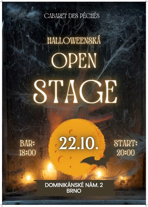 Halloween Open Stage je jedinečná šance pro každého, kdo se chce podělit o svůj talent – ať už jste profesionálové, amatéři, úplní začátečníci nebo umělci se zkušenostmi. Vaše vystoupení může mít podobu stand-upu, zpěvu, tance, hudebního čísla, magie, burlesque, slam poetry či jakékoliv jiné umělecké formy. Fantazii se meze nekladou – a pokud své číslo okořeníte halloweenským nádechem, večer získá ještě temnější a zábavnější kouzlo.