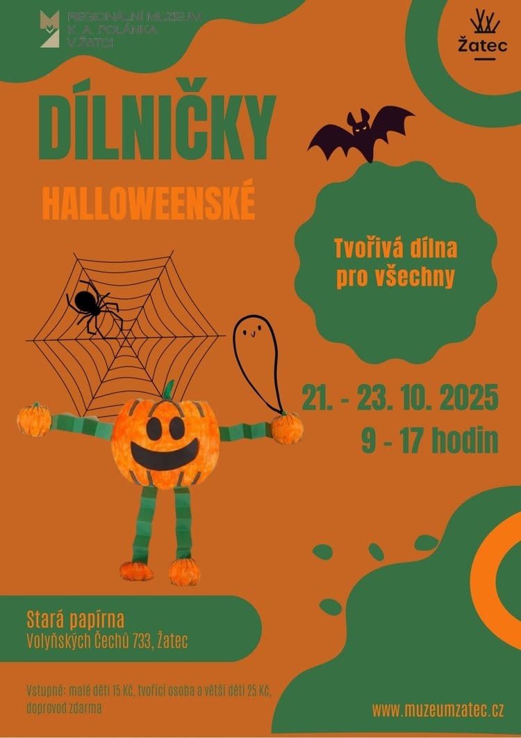 Regionální muzeum K. A. Polánka v Žatci zve do Staré papírny (Volyňských Čechů 733) od úterý 21. října do čtvrtka 23. října 2025 v čase 9 – 17 hodin na HALLOWEENSKÉ DÍLNIČKY.