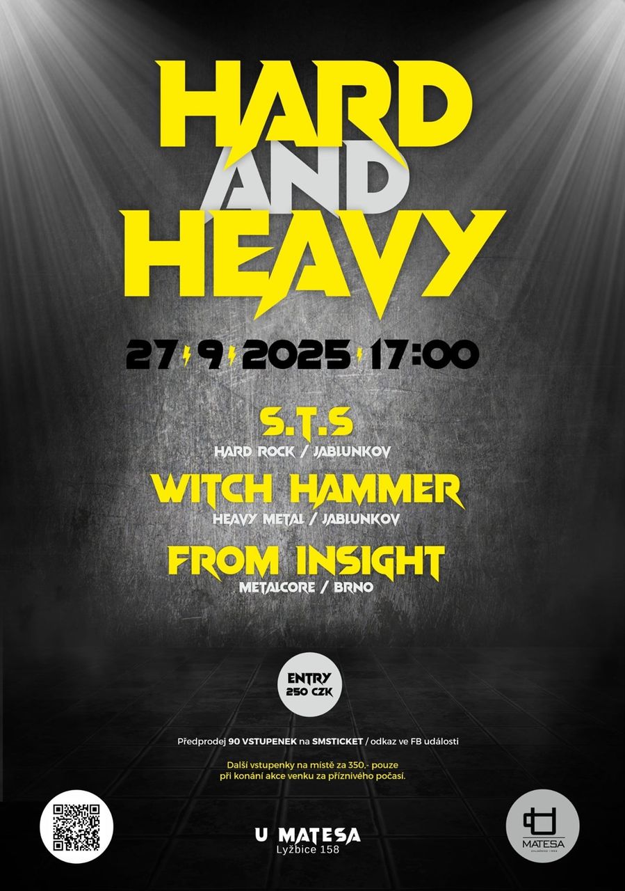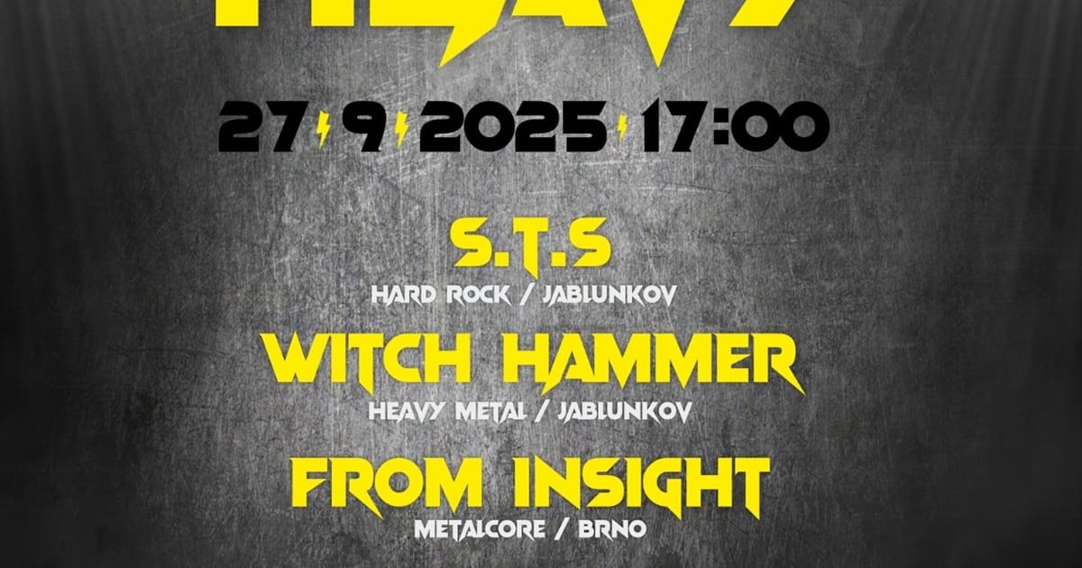 Pro příznivce tvrdší muziky jsme připravili akci HARD & HEAVY, kde uslyšíte tři kapely. Místní S.T.S. a WITCH HAMMER a brněnské FROM INSIGHT.