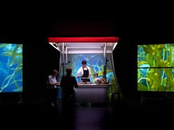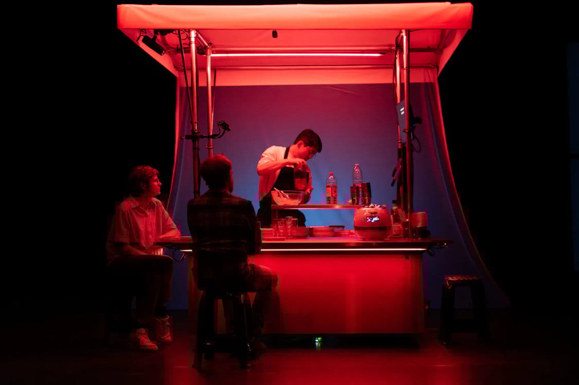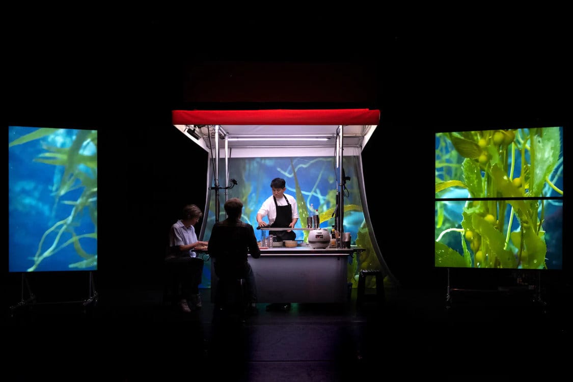 Překvapivá chuť polévky z mořských řas, ostrý zvuk nože krájejícího okurku, syčení a prskání rozpáleného oleje, ve kterém se smaží houby.